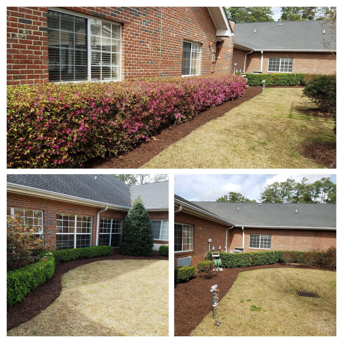 We do not recommend weed fabric because of the manner in which the fabric deprives the plants of water. Mulch is more effective in retaining water than pine straw. We can help you design a flower bed that is attractive and easy to maintain. Mulch is an essential component in gardening. It is used to suppress weeds, help the soil retain moisture and also to reduce erosion due to wind and rain. Additionally, as organic mulch decays, it provides helpful nutrients to the soil, enhancing microbial activity and improving the overall health of your plants.
